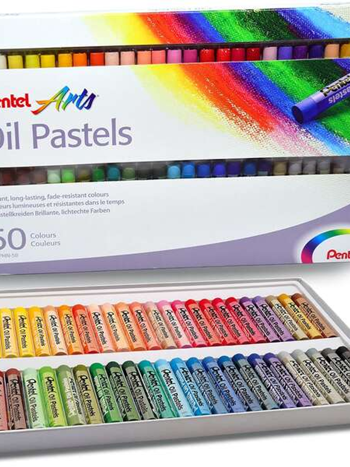 Pentel Oil Pastels Pack de 50 Pasteles Oleo - Blandos, Cremosos y de Secado Lento - Colores Surtidos