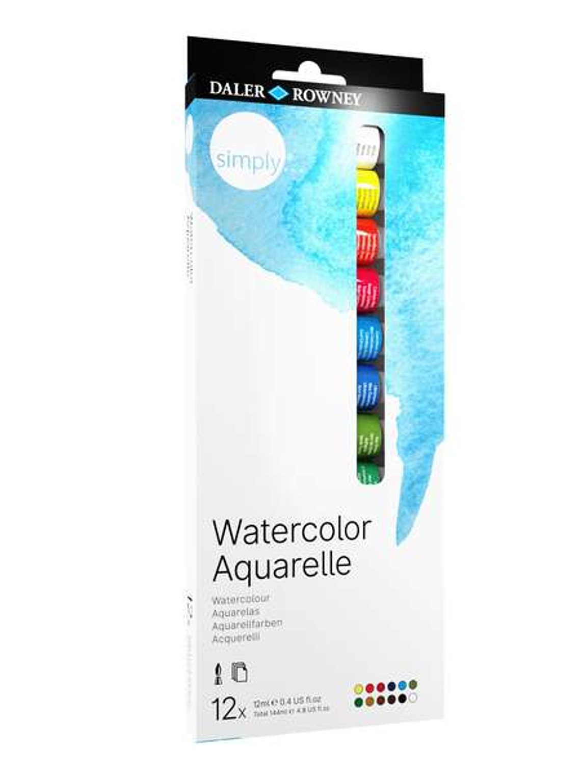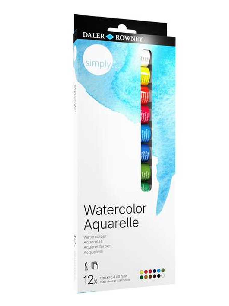 Daler Rowney Simply Pack de 12 Acuarelas 12ml - Se Humedecen Facilmente - Colores Surtidos