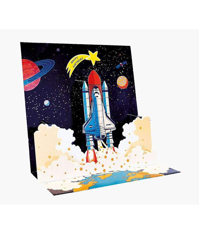 Pictura Tarjeta 3D Pop-Up - 16x16cm - Tematica del Espacio - Embolsada Individualmente - Incluye Sobre Blanco - Papel con Certificacion FSC