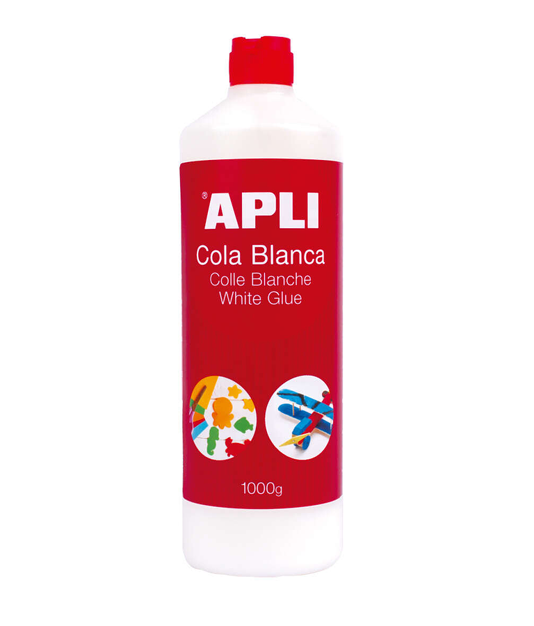 Apli Bote de Cola Blanca con Aplicador 1kg - Secado Rapido - Resistente al Agua - Libre de Solventes - No Toxica