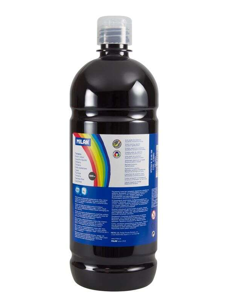 Milan Botella de Tempera 1000ml - Tapon Dosificador - Secado Rapido - Mezclable - Color Negro