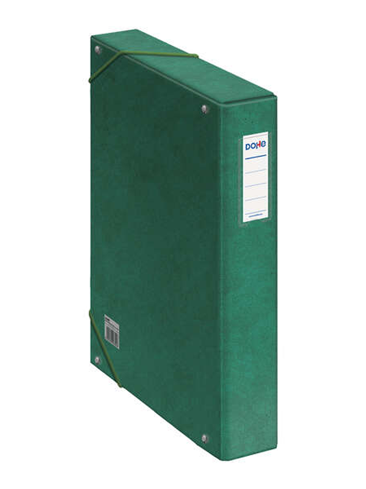 Dohe Caja para Proyectos Lomo 5cm Especificaciones: -Tamaño Lomo: 5cm -Cajas en cartón forrado con papel impreso y plastificado -Sistema cierre con gomas elásticas -Medidas: 245 x 350 x 50mm -Color: Verde
