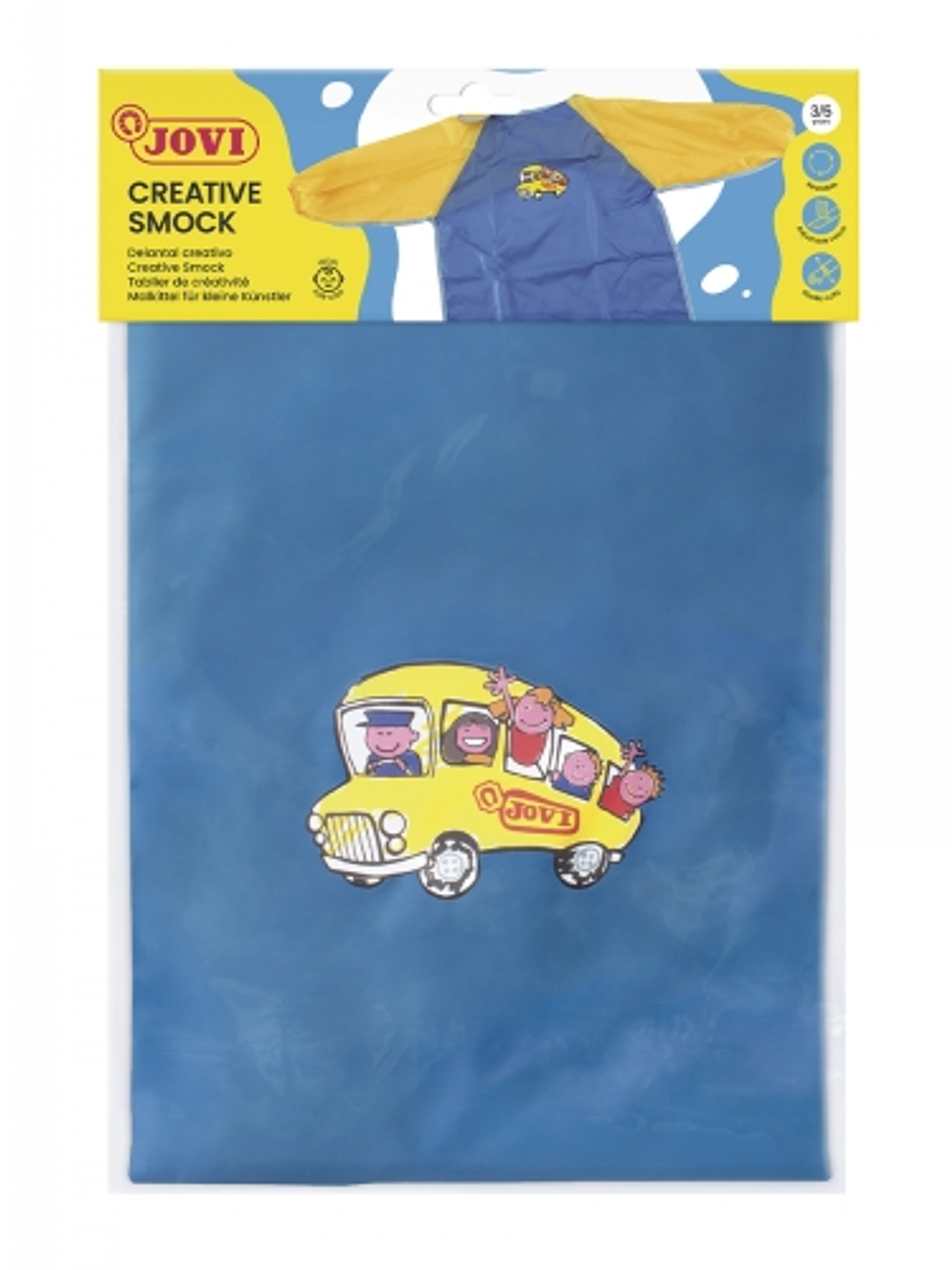 Jovi Delantal Pre-Escolar - Proteccion Contra Manchas - Recomendado de 3 a 5 Años - Puños Elasticos - Color Azul