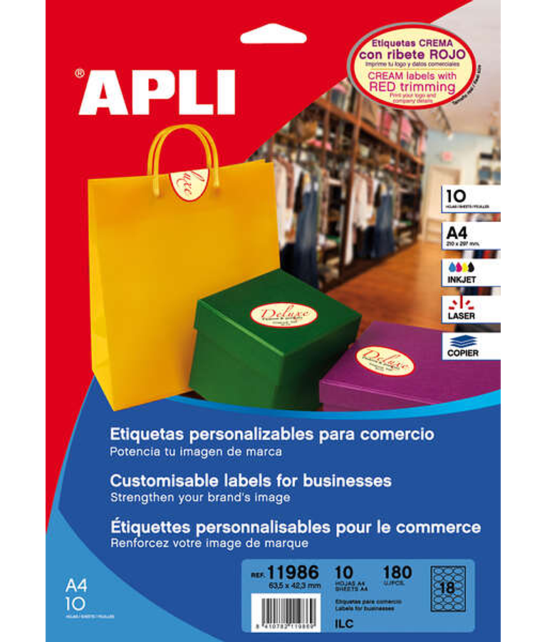 - Pack con 10 hojas (180 etiquetas)