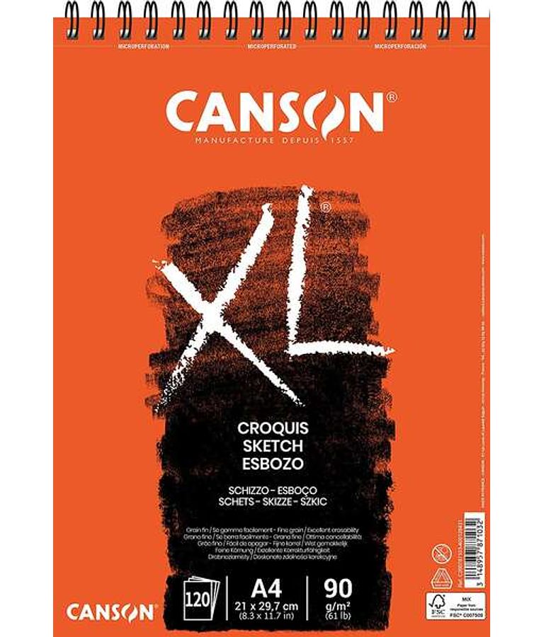 Canson XL Bloc de Croquis con 120 Hojas A4 - Espiral Microperforado - 21x29.7cm - 90g.