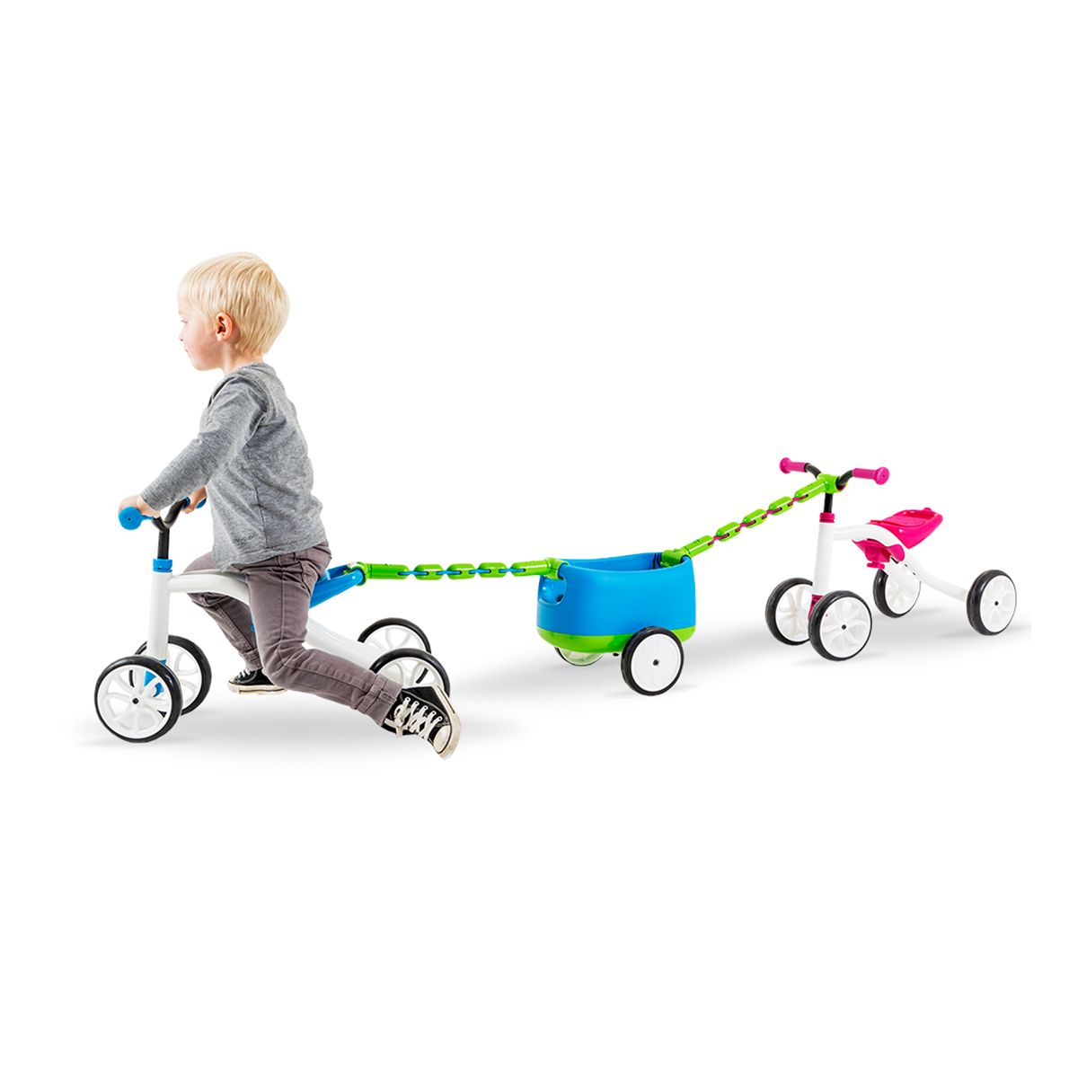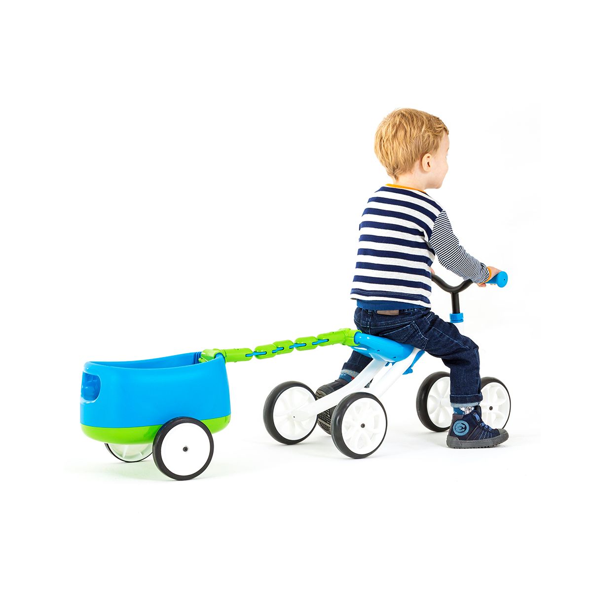 El correpasillo + carro Quadie es una opción perfecta para el más pequeño del hogar, podrá aprender a deslizarse de una manera divertida y segura, el correpasillos contienen 4 ruedas para que el niño desarrolle confianza en sus pequeñas aventuras y el carro incorporado tiene 2 ruedas para poder trasladar sus juguetes donde quiera que vaya.