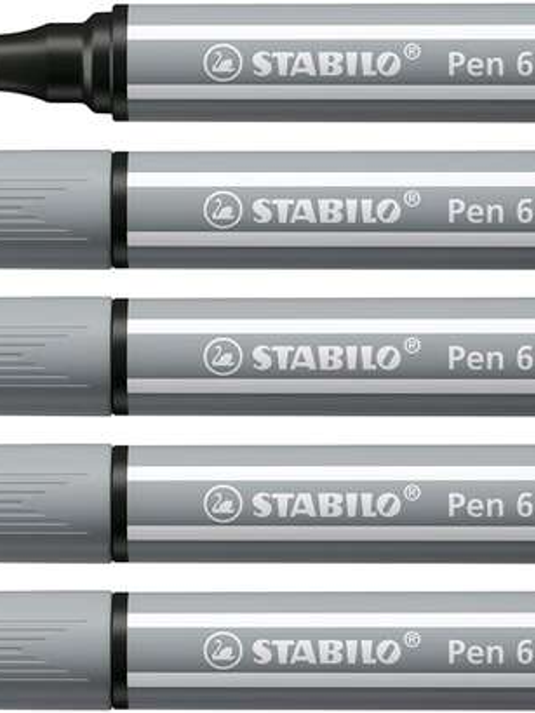 El rotulador premium Stabilo Pen 68 MAX con punta de fibra biselada es el complemento perfecto para la familia Pen 68. Con su punta de cincel, es ideal para colorear en áreas grandes y crear contornos precisos. Disponible en 24 colores. Su punta biselada se puede usar para trazos de 5 mm y 1 mm de ancho, perfecto para dibujar y colorear áreas grandes, así como para crear bordes afilados y contornos precisos. Tanto los artistas aficionados como los profesionales creativos aprecian la amplia gama de posibilidades que ofrece el Stabilo Pen 68 MAX: colorear, dibujar, crear patrones abstractos, rotular a mano, escribir un diario y mucho más. La tinta a base de agua hace que la creación de obras de arte con impresionantes efectos de acuarela sea muy sencilla. Gracias a su protección contra secado de 12 horas, el Stabilo Pen 68 MAX no tiene límites de tiempo para ningún proyecto creativo. Caracteristicas: -Rotulador premium de colores intensos con punta biselada. -Dos anchos de línea: 5 mm + 1 mm -Colores muy brillantes y luminosos para una rica aplicación de color. -Se une a la família: como los colores y las tintas son idénticos, el Stabilo Pen 68 -MAX es el complemento perfecto para Pen 68, Pen 68 brush, point 88 y pointMax. -Creatividad a un nuevo nivel: el Stabilo Pen 68 MAX es perfecto para diseños atrevidos y grandes en papel usando muchas técnicas diferentes como bocetos, coloreados, lettering o mezclas de colores. -Crea efectos de acuarela con su tinta a base de agua: el Stabilo Pen 68 MAX, un pincel y un poco de agua son las herramientas perfectas para producir increíbles obras de arte en papel de acuarela. -Creatividad durante el mayor tiempo posible, ya que la protección contra secado de -12 horas garantiza que el Stabilo Pen 68 MAX no se seca. -Tinta inodora a base de agua. Especificaciones: -Color: Gris -Pack de 5uds.