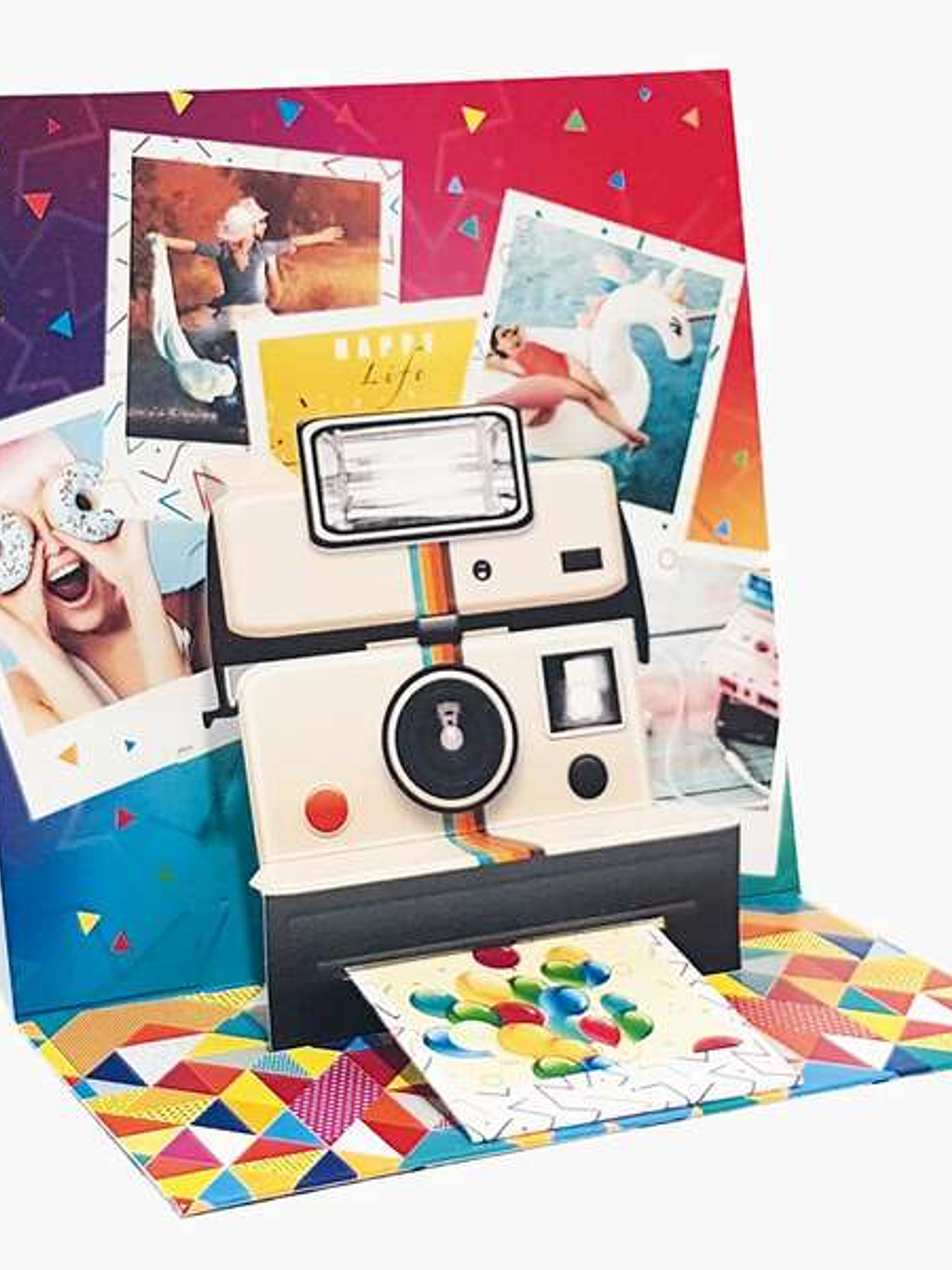 Pictura Tarjeta 3D Pop-Up Polaroid - 16x16cm - Tematica Polaroid - Embolsada Individualmente - Incluye Sobre Blanco - Papel con Certificacion FSC