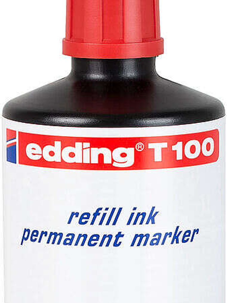 Edding T100 Bote de Recarga para Rotulador Permanente - Capacidad 100ml - Color Rojo