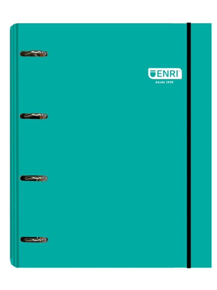 Carpeta A4+ de tapa extradura con recambio interior Enri de 100 hojas de 80 gramos, destacando con sus 5 colores de banda. Perfecta para organizar tus asignaturas de manera eficiente. La carpeta cuenta con 4 anillas de 35mm de diámetro, asegurando una sujeción firme. Incorpora una práctica goma negra redonda y presenta un elegante acabado brillante en la tapa. Disponible en cuatro atractivos colores: Negro, Verde Azulado, Azul y Rosa. Especificaciones: -Lomo ergonómico -Capacidad 300 hojas -Permite archivar A4 y Folio