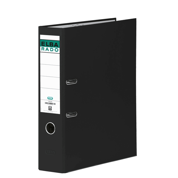 Elba Chic Archivador de Palanca Tamaño Folio - Lomo de 80mm - Con Ollao y Rado - Forrado Exterior PVC - Color Negro