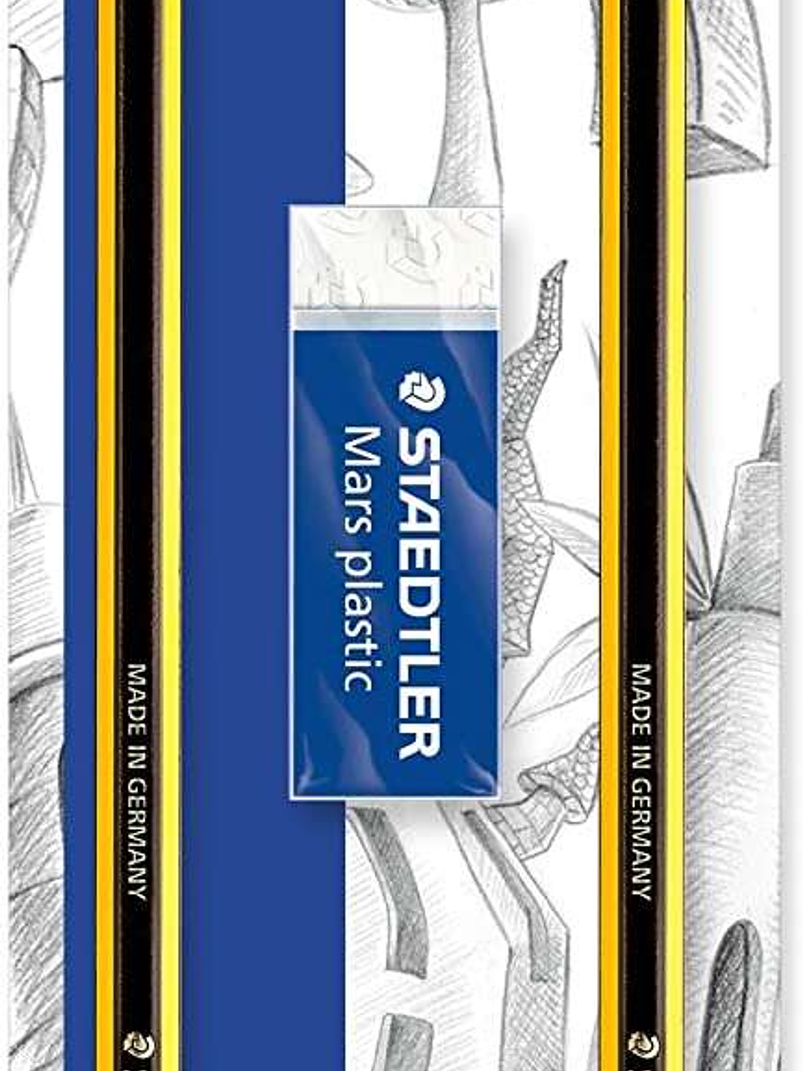 -Lapiceros clásicos de dureza media, HB 2M goma de borrar blanca Staedtler Mars Plastic y sacapuntas con tapa y depósito.